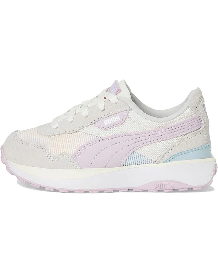 - Meet PUMA® Kids Cruise Rider, inspired by vintage cars, its playful design features a stacked outsole and TPU clip. The upper stays true to the Rider family, giving the opportunity for energetic color-blocking. It’s ready to hit the road and explore the world. The low-top sneakers are designed with EVA upper, polyester lining, rubber insole, signature PUMA formstrip on sides, and premium branding on the tongue and heel. These shoes feature a unique color palette and soft accents, adding a fun twist to the classic sneaker silhouette-perfectly playful aesthetic for your little one. A padded collar and tongue provide additional comfort around the foot.