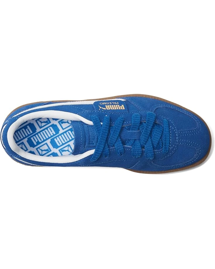 - Let your little one step into the groove wearing the PUMA® Kids Palermo. Crafted from plush suede and leather upper, this pair of funky shoes features debossed and foil-printed Puma branding on quarter panel tab and heel cap, while the T-toe construction nods back. Featuring a lightweight tongue and padded collar for a comfy fit, it comes with a cushioned midsole. Finished off with the eye-catching Formstrip to the sidewalls, the Cat window at the heel and the PUMA tag by the laces.
